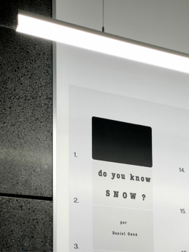 GRAPHIC AND EXHIBITION DESIGN FOR DO YOU KNOW SNOW? BY DANIEL CAUX AND MICHAEL SNOW, AN EXHIBITION CONCEIVED BY PIERRE LEGUILLON, JONATHAN POUTHIER, AND MYSELF, AT GALERIE MICHEL JOURNIAC, PARIS, AS PART OF THE RESEARCH PROJECT ZONE GRISE DE L’ORIGINAL, HEAD GENÈVE, 2024